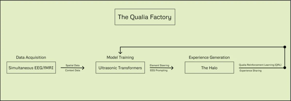 The Qualia Factory will be a research facility focused on expanding the frontiers of dream research and neurotechnology development. Initial plans are for 50,000+ square-feet of office, warehouse, and state of the art neuroimaging lab. The Qualia Factory collects data via EEG/fMRI, trains ultrasonic transformer models, and reliably generates extraordinary states of consciousness. At the limit, novel research here can transform how we experience reality, and will grow the scientific community of Praxis.