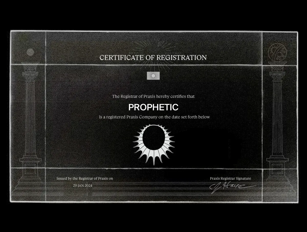Eric Wollberg, CEO and Co-Founder of Prophetic: "Praxis has been an invaluable partner in the development of Prophetic. The investor network was critical for our pre-seed. The city of Praxis offers humanity a new frontier to cultivate, so it was a natural fit for placing the Qualia Factory, which will be at the frontier of neurotech & consciousness research and development"